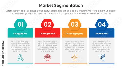 The watermark will not be included on Wall mural.: Market segmentation framework analysis infographic 4 point stage template with table box with hexago