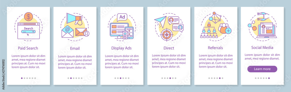 Wall mural marketing channels onboarding mobile app page screen with linear concepts. ways of customer attracti - Wall murals Wall mural marketing channels onboarding mobile app page screen with linear concepts. ways of customer attracti - Wall murals