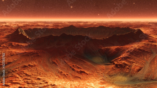 The watermark will not be included on Wall mural.: Mars planet surface with dust blowing - 3d illustration