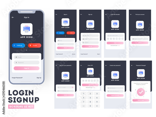 Wall mural : Material design ui, ux and gui layout with different login screens including account sign in, sign u