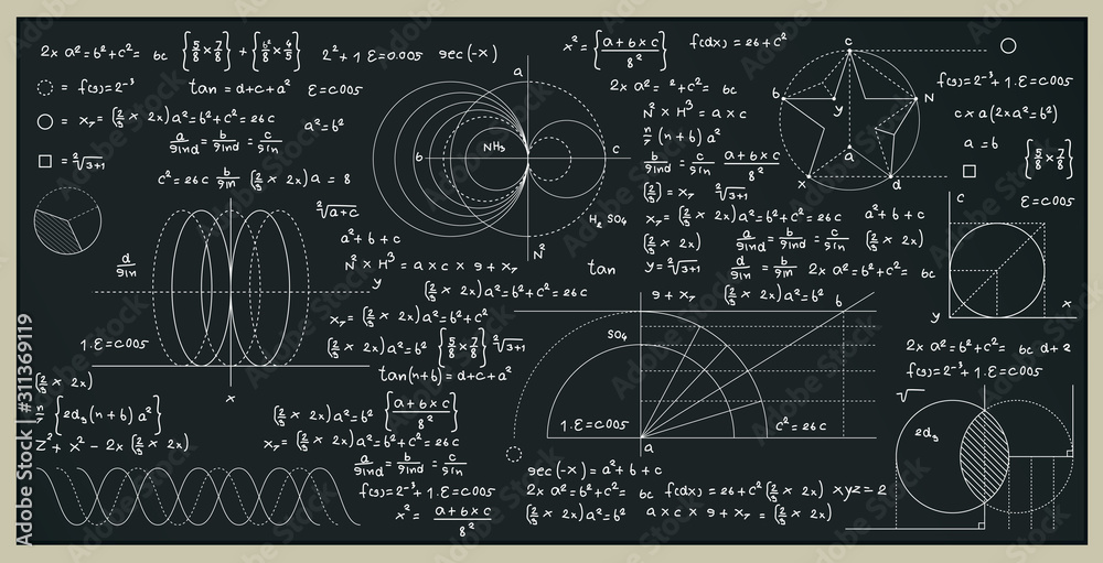 Wall mural math and science formulas with numbers on the blackboard. - Wall murals Wall mural math and science formulas with numbers on the blackboard. - Wall murals