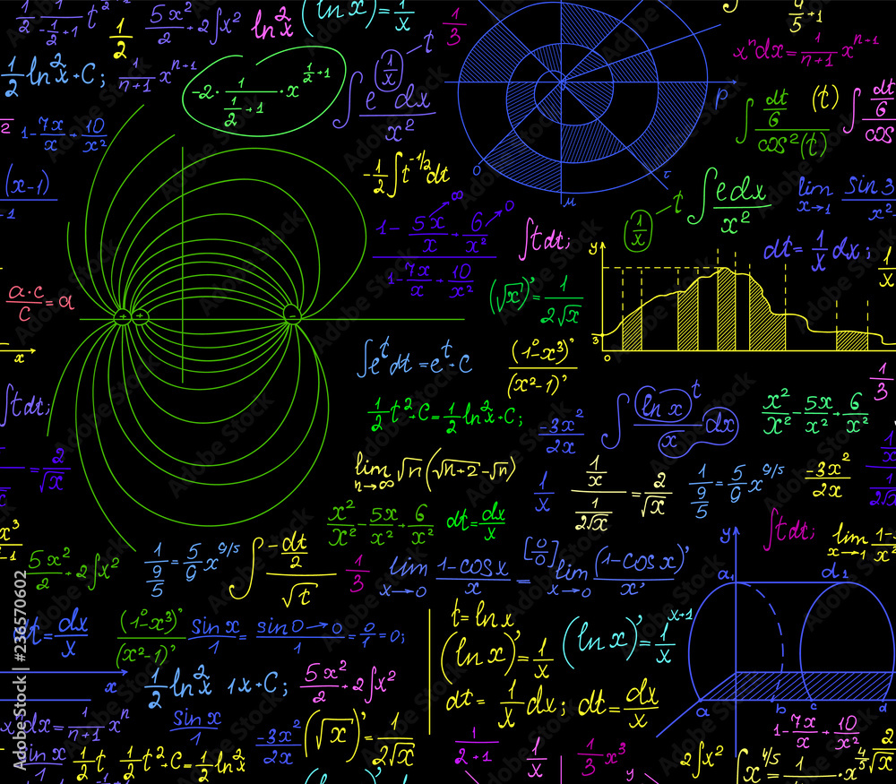 Wall mural math multicolored vector seamless pattern with various algebra formulas, calculations and geometrica - Wall murals Wall mural math multicolored vector seamless pattern with various algebra formulas, calculations and geometrica - Wall murals