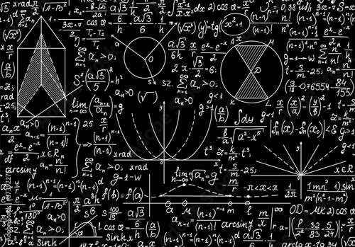 Wall mural math vector seamless background with handwritten scientific formulas, figures and calculations - Wall murals Wall mural math vector seamless background with handwritten scientific formulas, figures and calculations - Wall murals