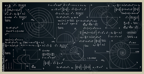 Wall mural mathematical and scientific formulas for finding the area of a circle on a blackboard. - Wall murals Wall mural mathematical and scientific formulas for finding the area of a circle on a blackboard. - Wall murals