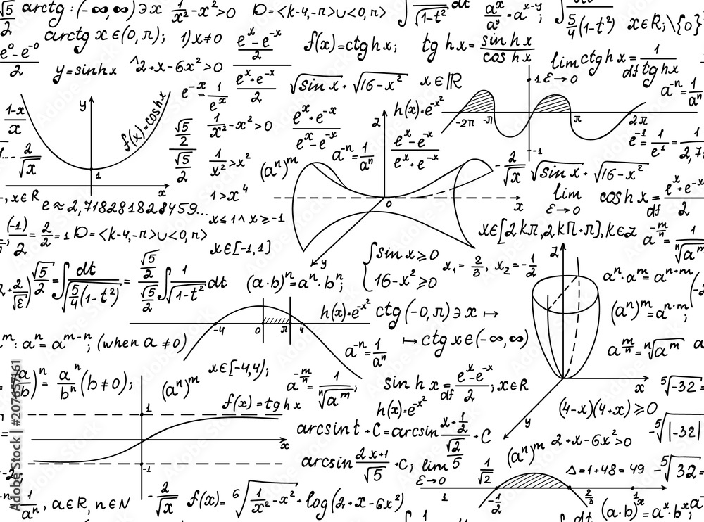 Wall mural mathematical vector seamless pattern with geometrical figures and formulas,