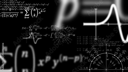 Wall mural maths animated overlay. complicated calculations, hard to understand concept symbol. black backgroun