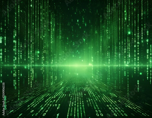 The watermark will not be included on Wall mural.: Matrix style binary code background in green digital datum with random falling numbers and informati