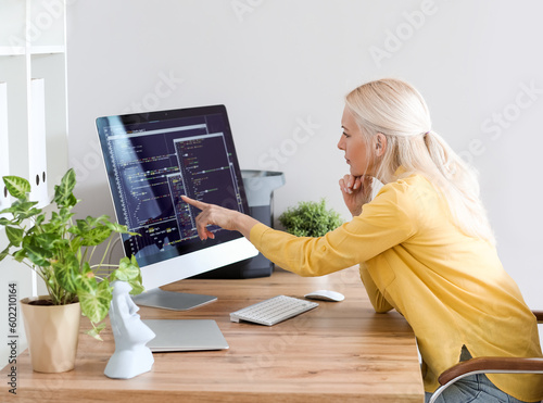 The watermark will not be included on Wall mural.: Mature female programmer working with computer at table in office