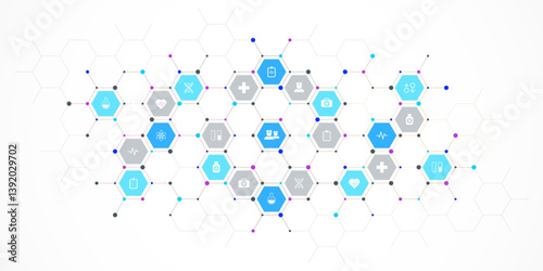 Wall mural medical background and healthcare technology with flat icons and symbols. concept and idea for healt
