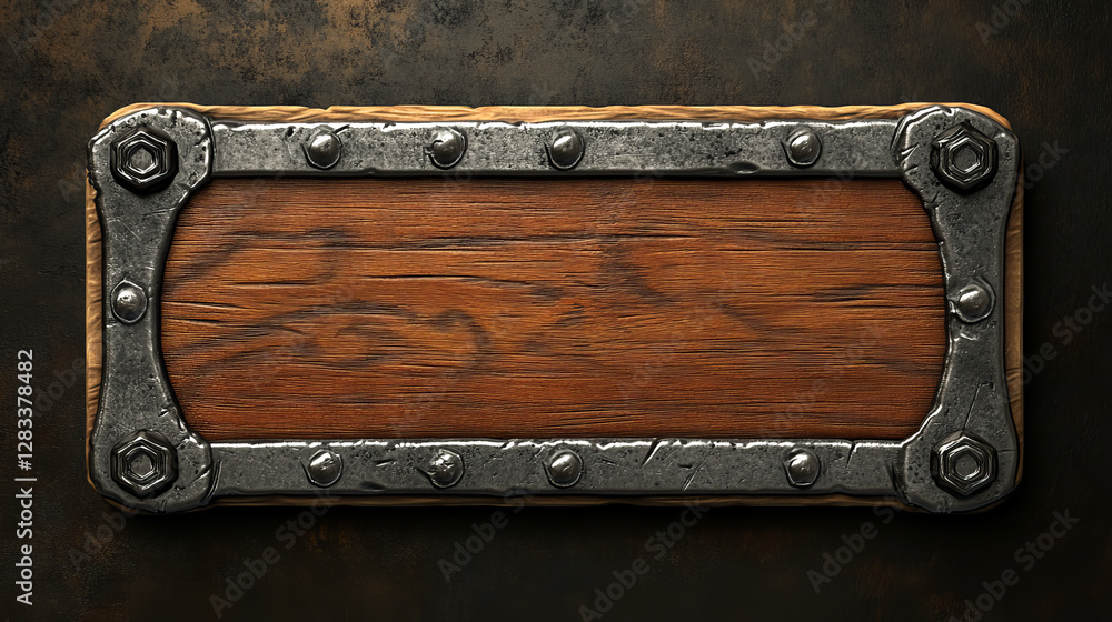 Wall mural : Medieval ui game wooden button with metal frame sprite for animation - fantasy rpg title sign design