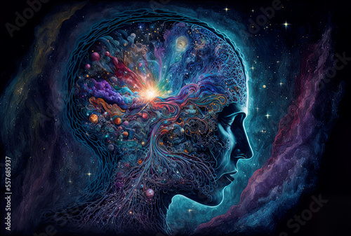 Wall mural meditation activates chakra, third eye and pineal gland. connection to the universe, being one with  - Wall murals Wall mural meditation activates chakra, third eye and pineal gland. connection to the universe, being one with - Wall murals