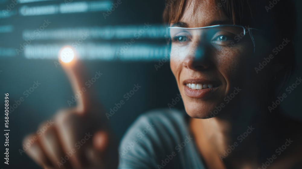 Wall mural medium shot focusing on visually impaired user interacting with an accessible cookieconsent banner u - Wall murals Wall mural medium shot focusing on visually impaired user interacting with an accessible cookieconsent banner u - Wall murals