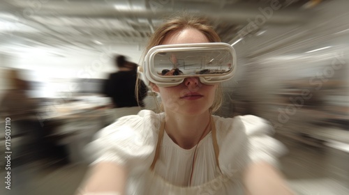 Wall mural medium shot of a viewer experiencing immersive vr art headset and captivated expression centered and - Wall murals Wall mural medium shot of a viewer experiencing immersive vr art headset and captivated expression centered and - Wall murals