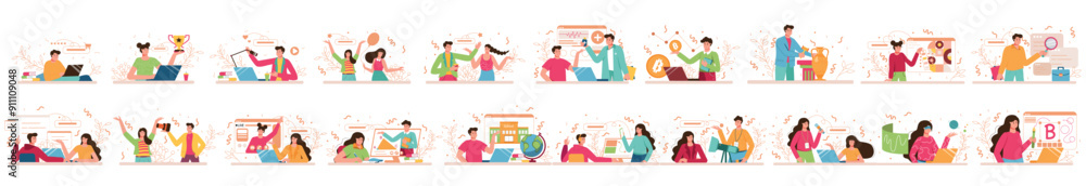 The watermark will not be included on Wall mural.: Mega set of colorful concepts with people scene in flat cartoon design - each scene in this collectio