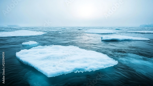 Wall mural melting ice floes create abstract patterns on the water's surface with a gray blue background and so - Wall murals Wall mural melting ice floes create abstract patterns on the water's surface with a gray blue background and so - Wall murals