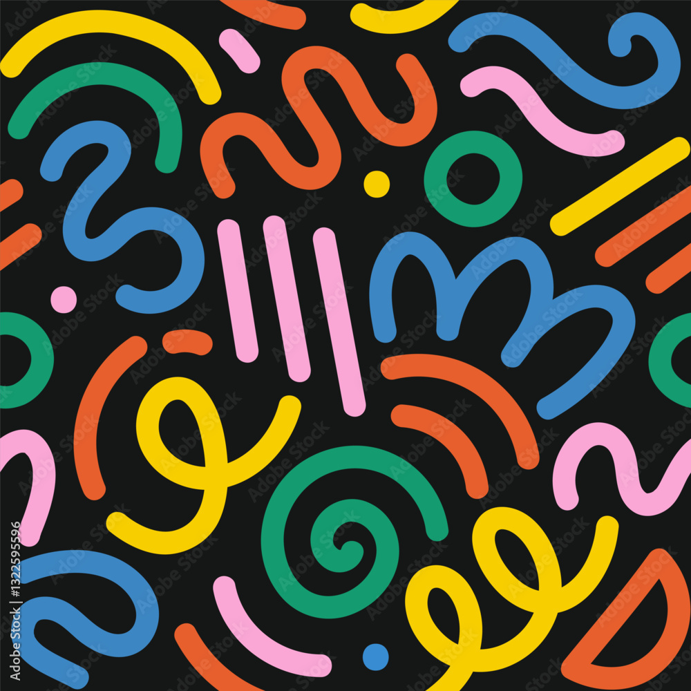The watermark will not be included on Wall mural.: Memphis geometric seamless pattern - multicolor abstract background in retro 80s, 90s style with vari