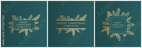 The watermark will not be included on Wall mural.: Merry christmas abstract botanical card collection with rectangle frame banners and modern typograph