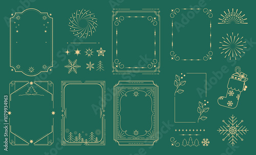 Wall mural : Merry christmas and happy new year greeting card frame design vector element set - christmas tree, br