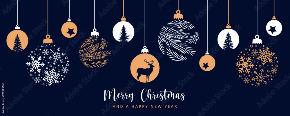 Wall mural : Merry christmas card with hanging ball decoration vector illustration
