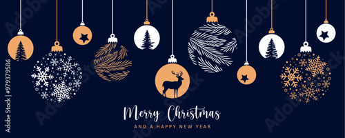 Wall mural merry christmas card with hanging ball decoration vector illustration
