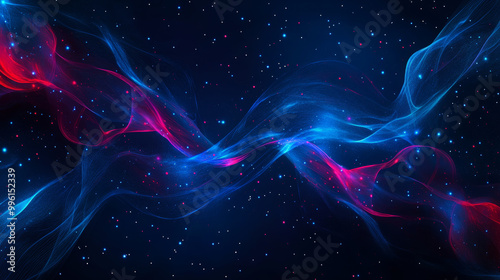 Wall mural mesmerizing abstract background featuring flowing waves of blue and red against dark starry backdrop - Wall murals Wall mural mesmerizing abstract background featuring flowing waves of blue and red against dark starry backdrop - Wall murals