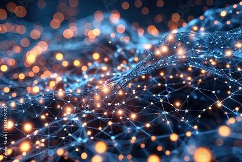 Wall mural : Mesmerizing abstract tech mesh with glowing particles for a dynamic background