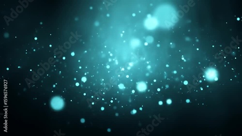 The watermark will not be included on Wall mural.: Mesmerizing blue glowing particles floating in dark abstract space with soft light rays -