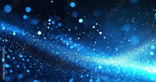 Wall mural : Mesmerizing blue particles flowing through a dark background with sparkling effects
