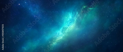 Wall mural : Mesmerizing deep space nebula with green and blue cosmic glow in a starry universe background
