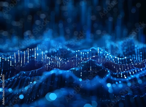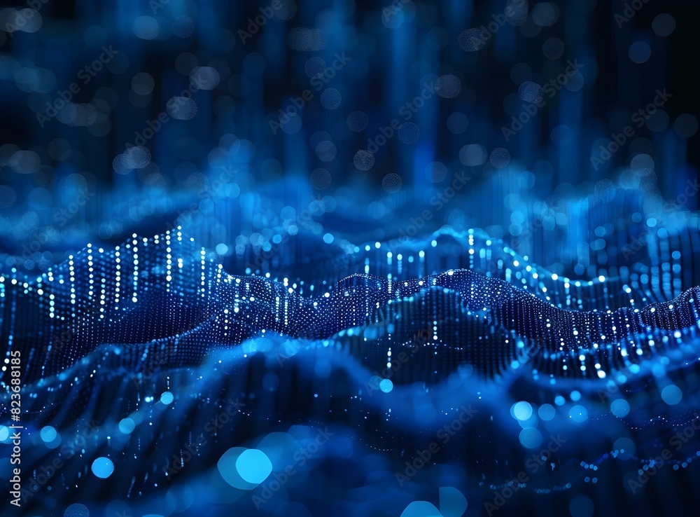 Wall mural : Mesmerizing digital tapestry of pulsating lights and kinetic flows in an ethereal futuristic realm
