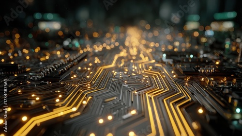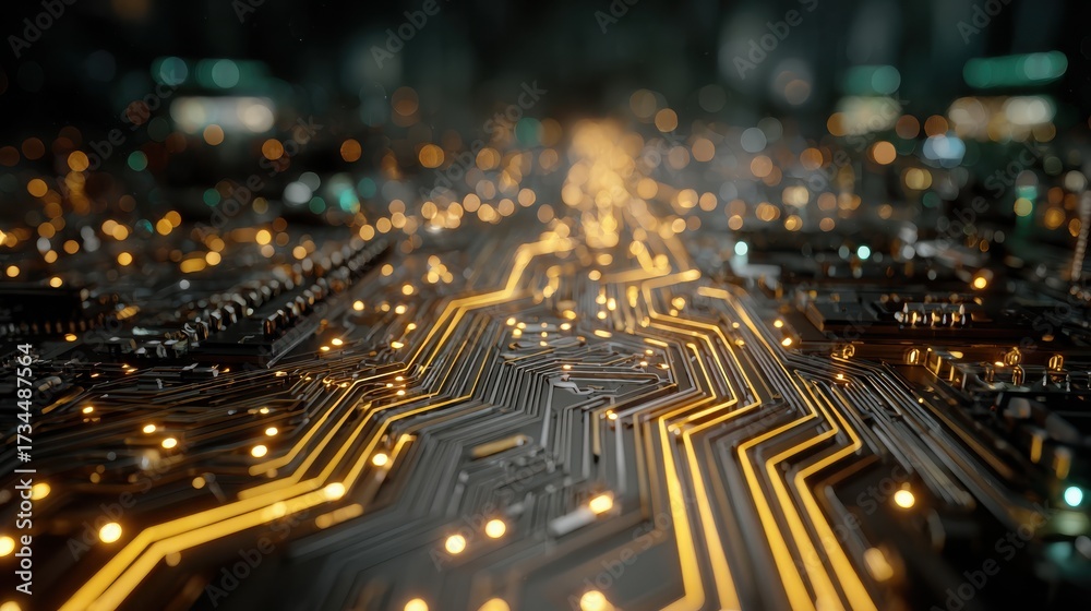 Mesmerizing glowing patterns on circuit board with intricate designWall mural