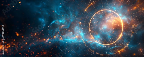 Wall mural mesmerizing mystical frame with glowing symbols and celestial aura on starry background