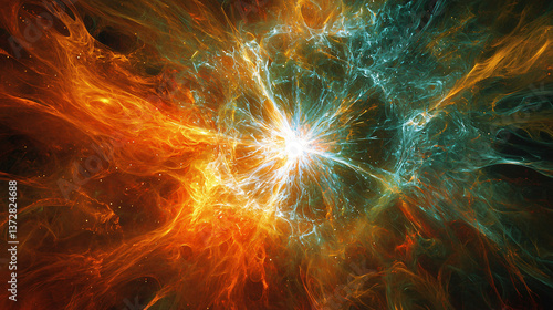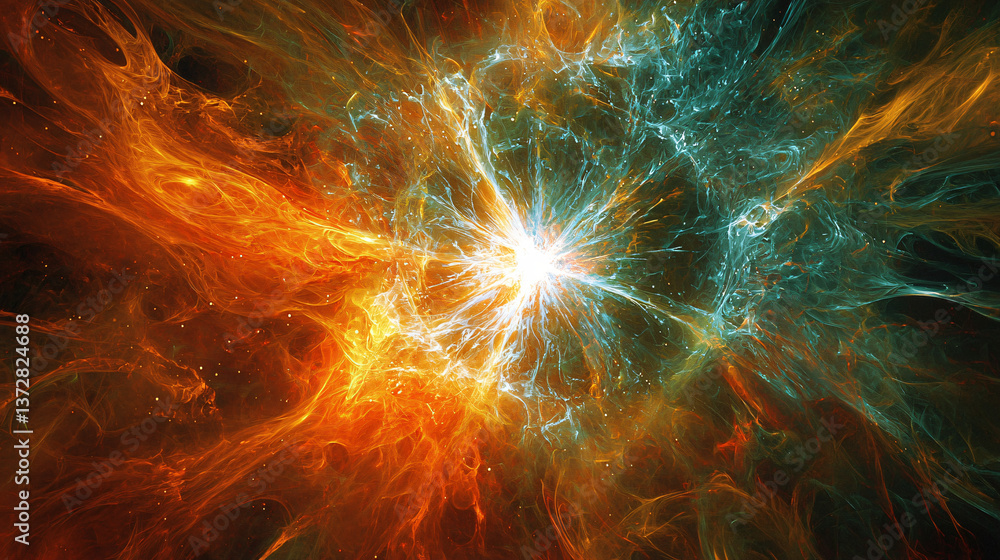 Wall mural : Mesmerizing nebula featuring bright orange and blue colors creating an ethereal cosmic display of en