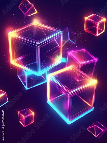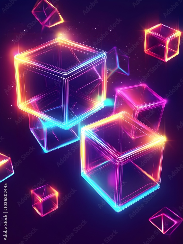 The watermark will not be included on Wall mural.: Mesmerizing neon cubes floating in a captivating abstract space