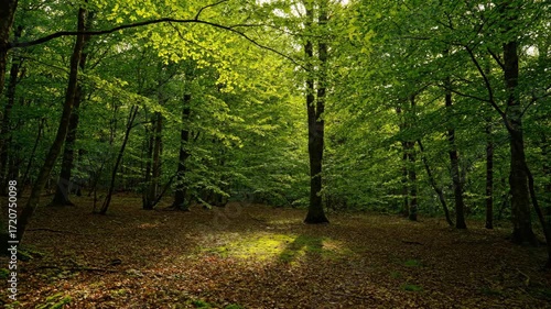 Wall mural mesmerizing timelapse of sunlight dappling through dense forest canopy, creating shifting patterns o - Wall murals Wall mural mesmerizing timelapse of sunlight dappling through dense forest canopy, creating shifting patterns o - Wall murals