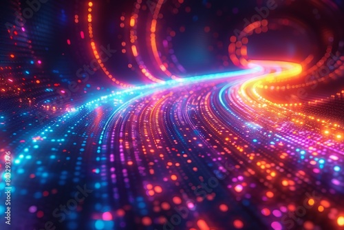 The watermark will not be included on Wall mural.: Mesmerizing tunnel of bokeh lights with a futuristic look in vivid shades of blue and red, creating