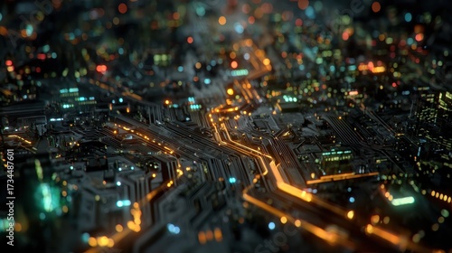 Wall mural mesmerizing visual of glowing intricate patterns in urban landscape - Wall murals Wall mural mesmerizing visual of glowing intricate patterns in urban landscape - Wall murals