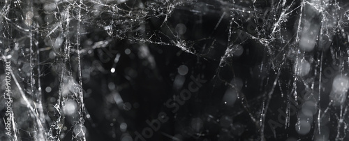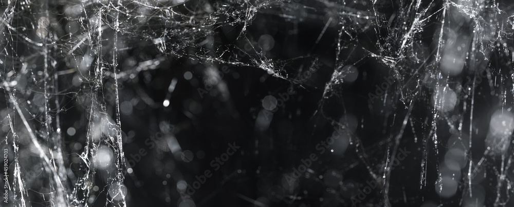 Wall mural mess of cobwebs or spiderwebs on black. spooky halloween spider web decorations.