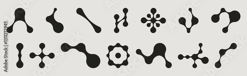 Wall mural : Metaball black shapes collection with organic connected elements - minimalist molecular structures in