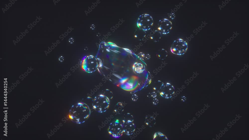 The watermark will not be included on Wall mural.: Metaball liquid transparent iridescent blobs - 3d rendering abstract multicolor moving flow bubbles -