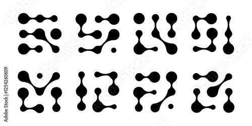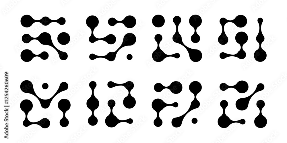 Wall mural metaballs shapes. connected fluid points, liquid dots or amorphous forms. organic blobs, biological