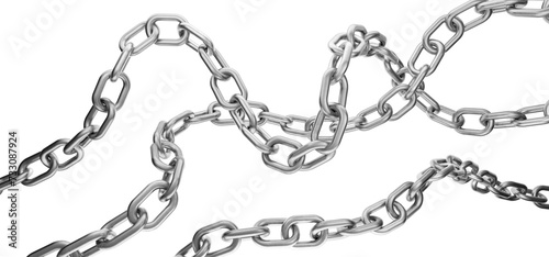 Wall mural metal chain in wave. metal chain blank for your design. several metal chains of different sizes. 3d