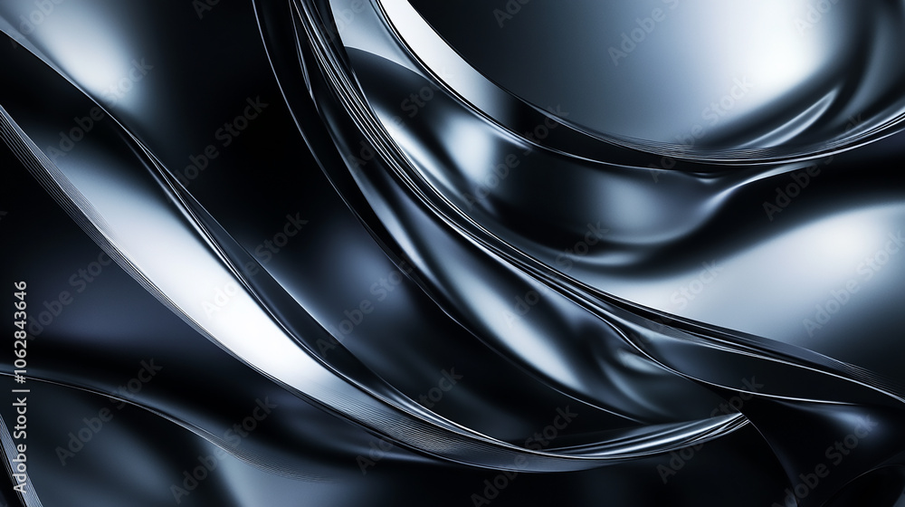 Wall mural metallic abstract wavy the form of liquid shiny metal. glossy chrome texture. 3d rendering - Wall murals Wall mural metallic abstract wavy the form of liquid shiny metal. glossy chrome texture. 3d rendering - Wall murals