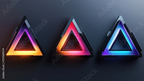 The watermark will not be included on Wall mural.: Metallic geometric patterns in overlapping triangles with glowing neon accents