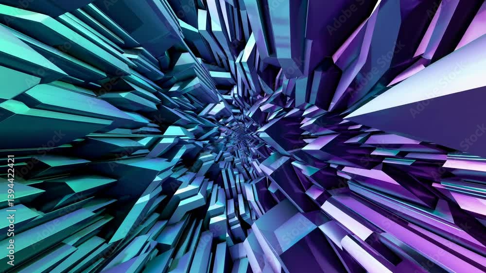 The watermark will not be included on Wall mural.: Metallic geometric shapes are forming a tunnel effect, creating a dynamic and futuristic composition