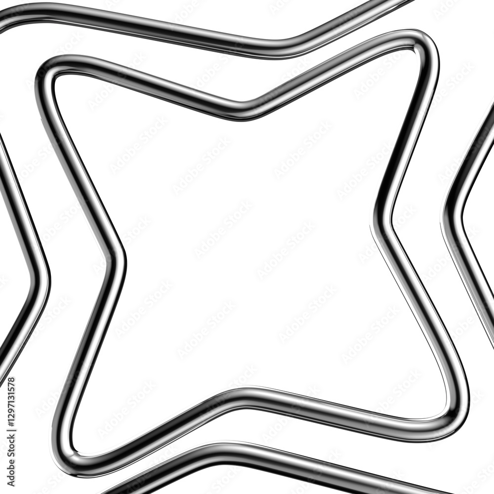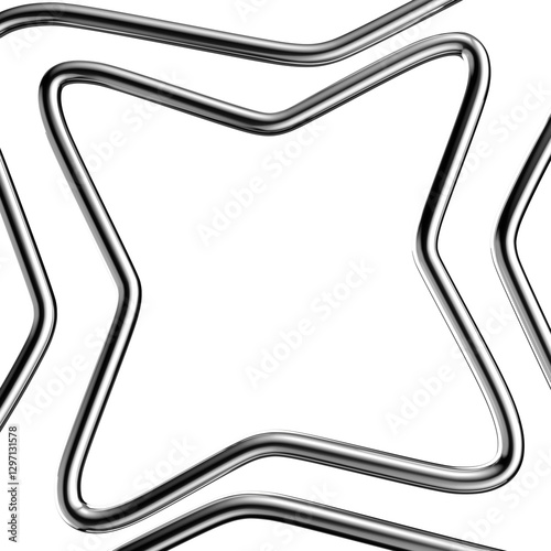 The watermark will not be included on Wall mural.: Metallic line frame 3d shape isolated - futuristic chrome wavy line border, abstract bent curve
