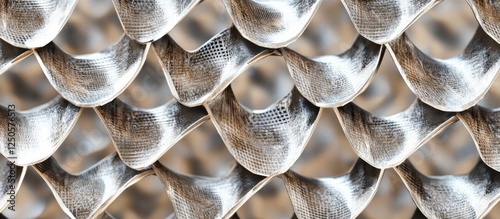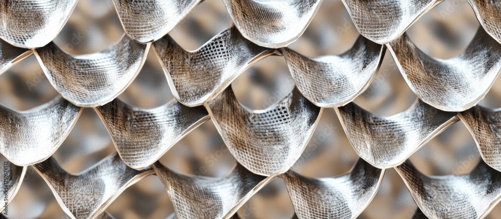 The watermark will not be included on Wall mural.: Metallic mesh pattern featuring intertwined elements with a reflective surface ideal for industrial