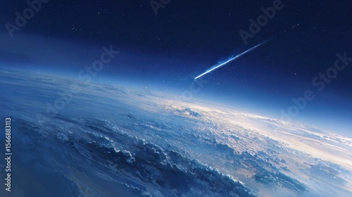 The watermark will not be included on Wall mural.: Meteor streaking across the night sky above earth in outer space
