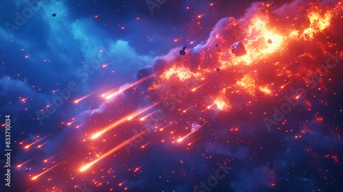 Wall mural meteorite was burning fiercely. it is falling towards the earth at high speed in the sky - Wall murals Wall mural meteorite was burning fiercely. it is falling towards the earth at high speed in the sky - Wall murals