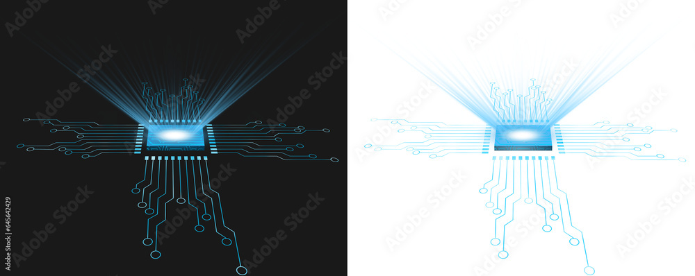 The watermark will not be included on Wall mural.: Microchip with circuit line blue with light spot futuristic design transparent background